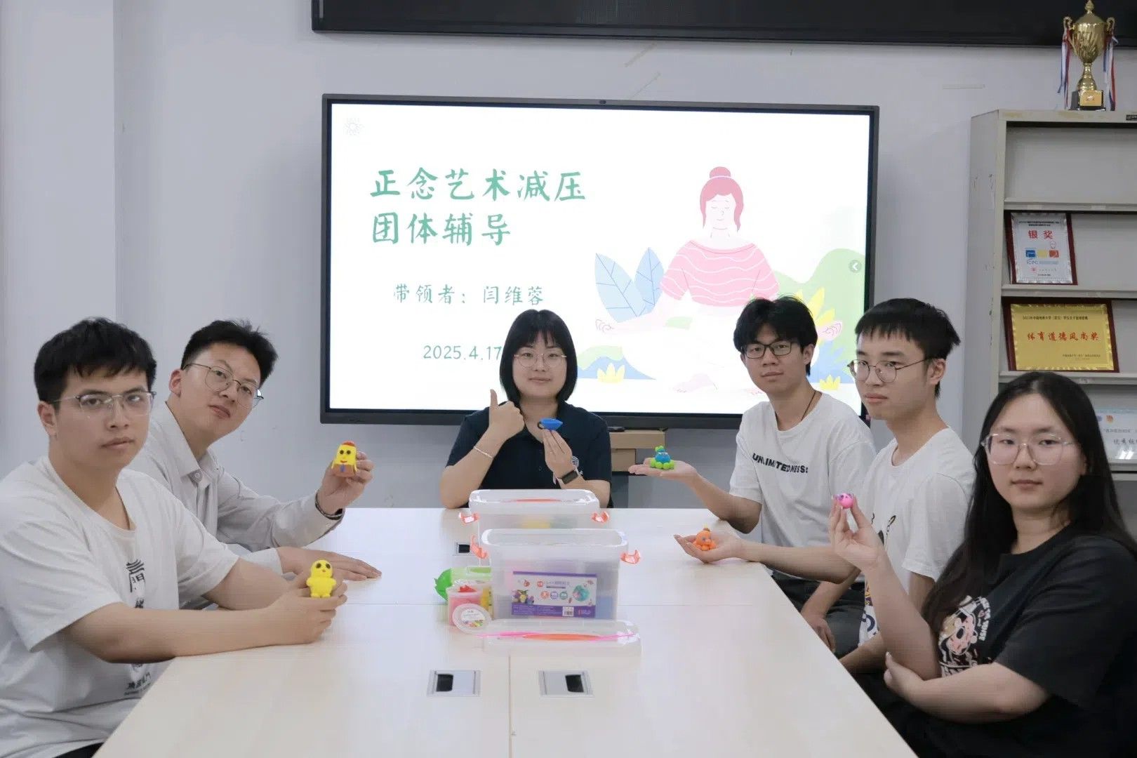 活动尾声,闫老师寄语在场同学,希望大家在繁忙的学习生活中,也能留出片刻空间,用“正念”关照自己,用“艺术”疗愈身心,学会在节奏快速的生活中找到平衡与内在的安宁。此次活动不仅为同学们带来了一场感官与情绪的“减压之旅”,更传播了一种可持续的心理调适方式。许多参与者纷纷表示,自己在体验中收获了前所未有的放松与专注感,也意识到——即便是最平凡的事物,只要用心去感受,也能成为滋养心灵的源泉。