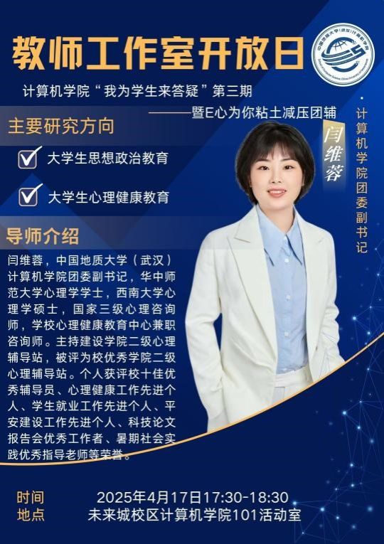 2025年4月17日下午,beat365官方网站“计科师生办实事,我为学生来答疑”教师工作室开放日活动在未来城校区beat365官方网站101活动室顺利开展。本期活动以“正念艺术减压”为主题,特邀beat365官方网站团委副书记闫维蓉老师担任主讲嘉宾,党建辅导员谭文博老师及学生代表共同参与。活动通过“理论讲解+沉浸体验+艺术创作”的多元形式,为同学们打造了一场别开生面的心灵SPA。