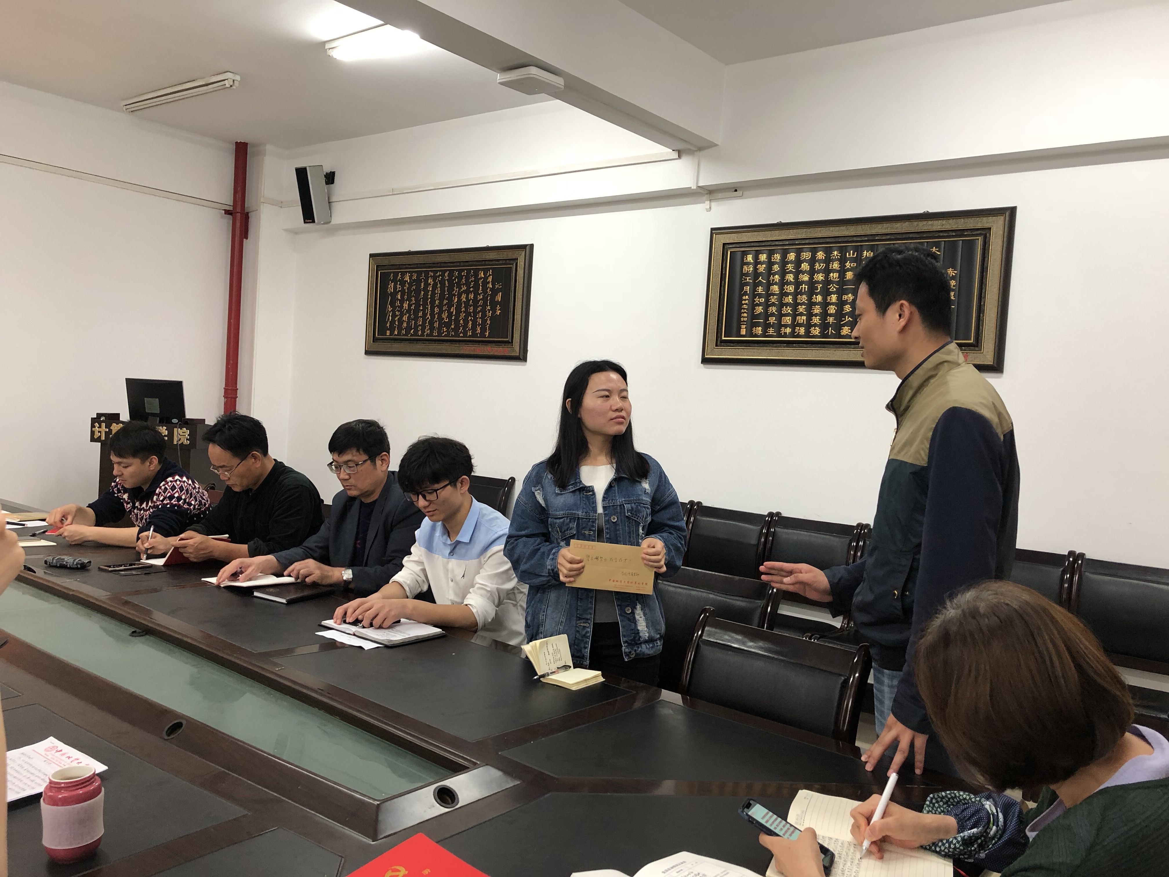 随后,支部“三个一工程”帮扶对象,beat365官网研二学生廉颖同学介绍了2017年的学习、生活等方面情况。她说,她研一已经修完全部课程,研二上已经完成了导师的项目并顺利上线。现在即将到“爱奇艺”公司实习,各方面情况都有条不紊的进行着。生活上也逐渐摆脱困境,这都得益于学院的关心和帮助。大家听了非常的欣慰,表示学院是其坚强后盾,让其通过努力学习,改善自己的生活,同时为社会做出贡献。石剑峰同志代表支部还向其送去了慰问金,希望她不懈努力,成长成材!