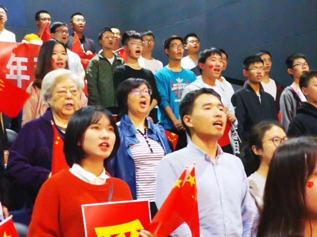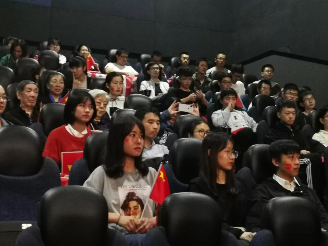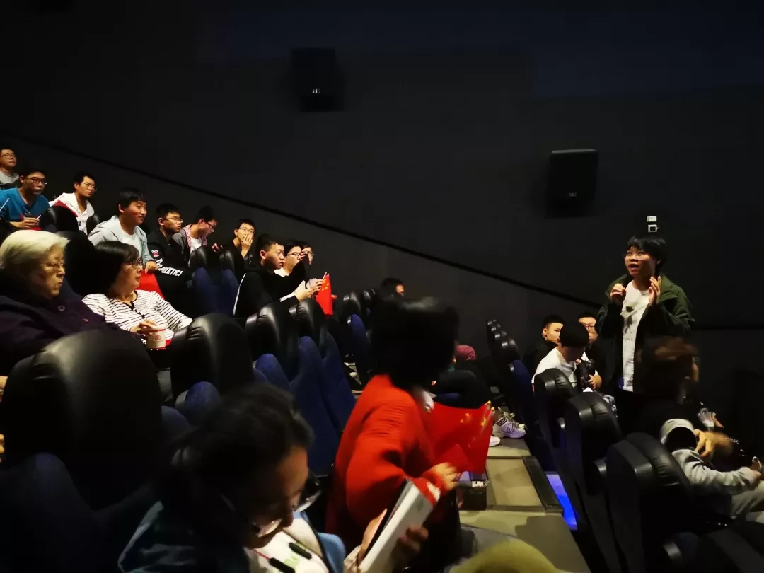 此次放映的影片是正在上映的爱国巨作《我和我的祖国》。下午六点整,新校区参与活动的同学们准时坐上了开往光谷的大巴车。在开往光谷市区的这段时间里,同学们齐唱爱国歌曲,爱国的热情与欢乐的气氛填满了整个巴士。