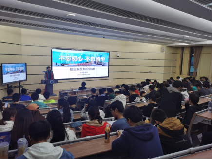 宣讲会共分为三大模块,首先是马钊老师介绍信息安全专业的基本情况,包括学科重要性、专业历史、特色与优势、师资力量、师生成果、产学研合作、国内外交流、科学研究、就业深造等多个方面,有效和全面的将信息安全专业充分展示在了同学们面前。