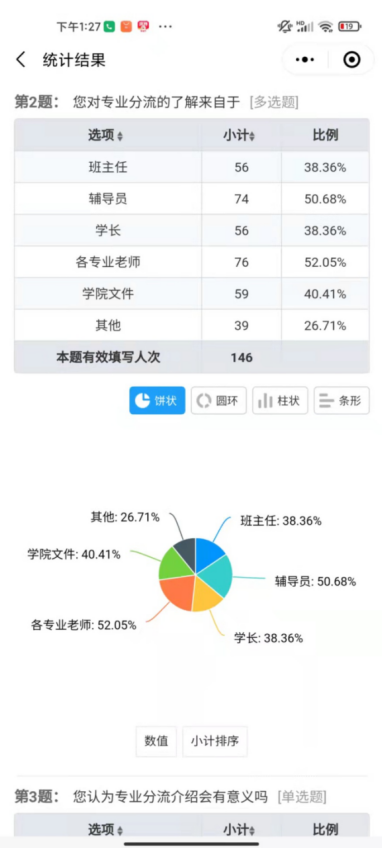 而只有52.05%的同学对专业的了解是来自于专业老师的。