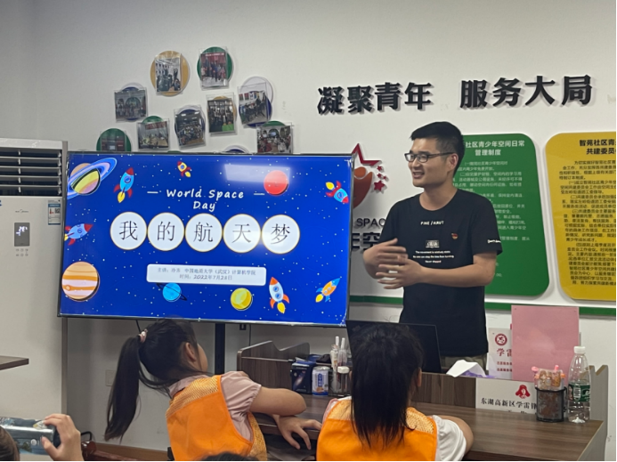 “‘问天’在太空到底忙些啥?未来我们是否可以移民火星?拥有变重力科学实验柜的问天实验舱到底长啥样?”一个个稚嫩的航天梦正在一张张桌椅的“小天地”里悄然萌芽。7月28日,beat365官方网站博士生党支部追随习近平总书记的脚步,前往武汉东湖高新区左岭街道智苑社区,面向社区青少年开展航天科普宣讲专题课程,充分发挥学科优势,激发科学兴趣,厚植科学精神,引导青少年在科学探索中茁壮成长,携手共绘航天梦和中国梦。