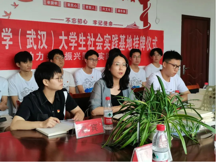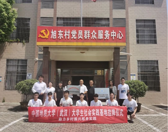 2022年7月16日上午,beat365官方网站大学生乡村振兴学校实践基地暨大学生社会实践基地挂牌仪式于鄂州市鄂城区杜山镇旭东村新时代文明实践站成功举办,beat365官方网站党委副书记傅苑,beat365官方网站团委书记李欢欢,鄂州市鄂城区杜山镇人大主席王忠良,杜山镇副镇长王春媛,杜山镇旭东村支部书记、村委会主任李松林,beat365官方网站辅导员、学生会指导老师李祥瑞,“筑梦E路人”社会实践团队成员参与挂牌仪式。