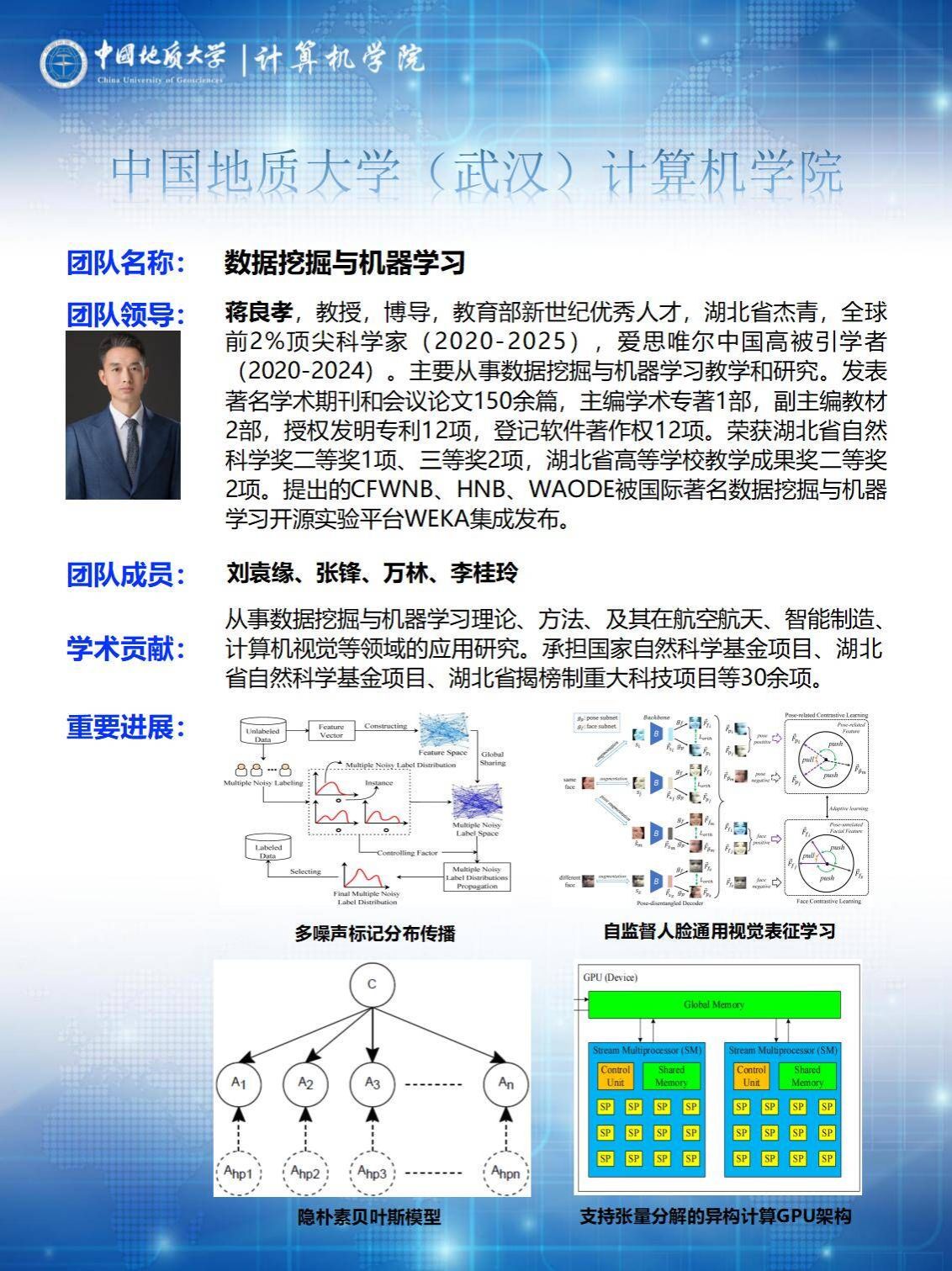 beat365官方网站蒋良孝教授领导的数据挖掘与机器学习团队连续获得国家自然科学基金项目、湖北省自然科学基金重点项目、湖北省揭榜制重大科技项目等资助,自主研发数据挖掘与机器学习系列理论及其应用创新成果,发表著名学术期刊和会议论文500余篇,授权国家发明专利50余项,登记计算机软件著作权30余项,出版教材专著10余部,荣获省部级以上奖励10余项。与国内外同类产品相比,具有高效和鲁棒的特点,目前已经在航空航天、智能制造、计算机视觉等领域推广应用,并获得广泛认可与好评,具有广泛的市场前景和预期经济效益。