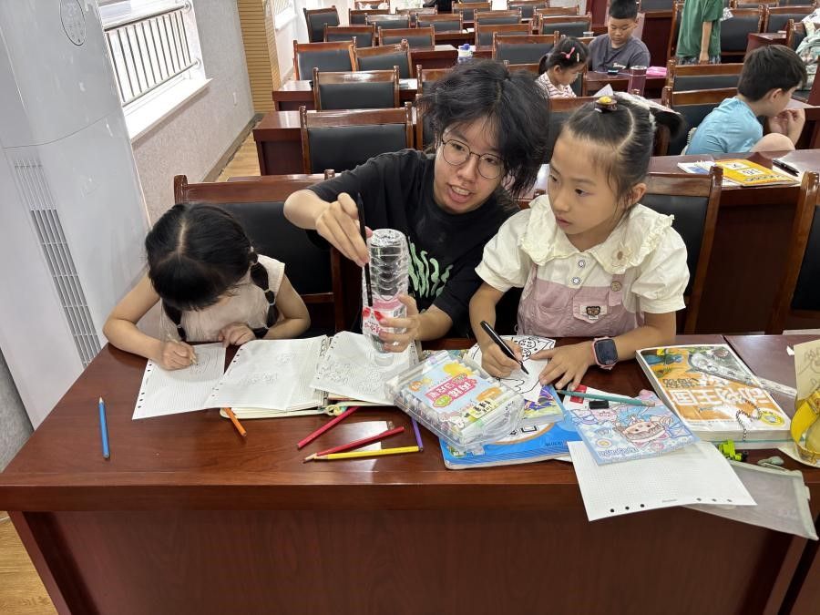 从高年级的孩子奋笔疾书、钻研数学难题、品读语文文章的认真模样,到年纪小的孩子握着彩笔涂画天马行空的想象,志愿者们总是安静地守在一旁,一边轻声讲解知识点,一边温柔回应孩子们稚嫩却充满好奇的问题。