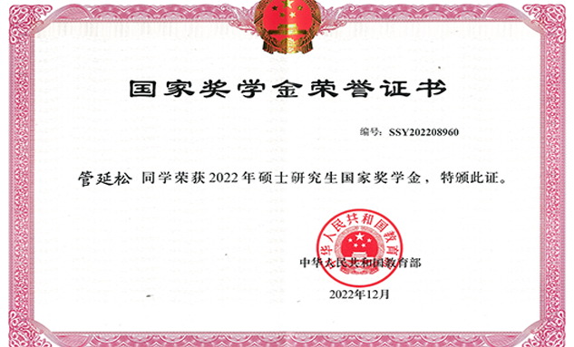 三载疫病之间,蒙母校之庇佑,倍感恩深义重,自是情愫益浓。正是学校和两位导师的鼓励与资助使他能够选择继续深造,完成自己的科研梦。在本科导师顾西辉教授的支持下,管延松选择跨考计算机专业开展深度学习与极端天气相结合的交叉研究。在学习计算机专业知识的同时,管延松将本科所学的地学知识与机器学习方法相结合,以期采用深度学习技术攻克地学前沿难题,并依靠扎实的地学知识为机器学习的模型可解释性提供理论支撑。硕士期间,管延松以出色的表现脱颖而出,以均分91.58分的优异成绩位居全院第1名。最终,管延松获得了2次国家奖学金和3次校级奖学金。