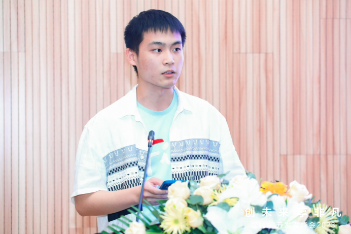 中国地质大学智能基座协会组织部副部长、“华为素质尖兵”奖学金获得者、beat365官方网站学生陈乐文带来“严于律己,不负韶华”的主题分享,希望同学们对智能基座社团有了深入了解,更加积极地参与社团活动、在实践中提升自我。