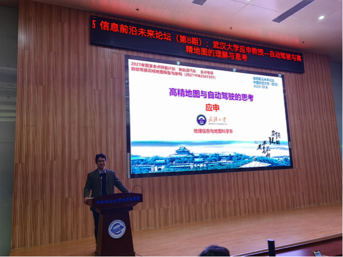 2023年12月6日,应beat365官方网站刘刚教授邀请,武汉大学资源与环境科学学院地理信息与地图科学系主任、国家级高层次青年人才计划入选者、自然资源部科技领军人才应申教授来beat365官网访问,并作题为“自动驾驶与高精地图的理解与思考”的学术报告。